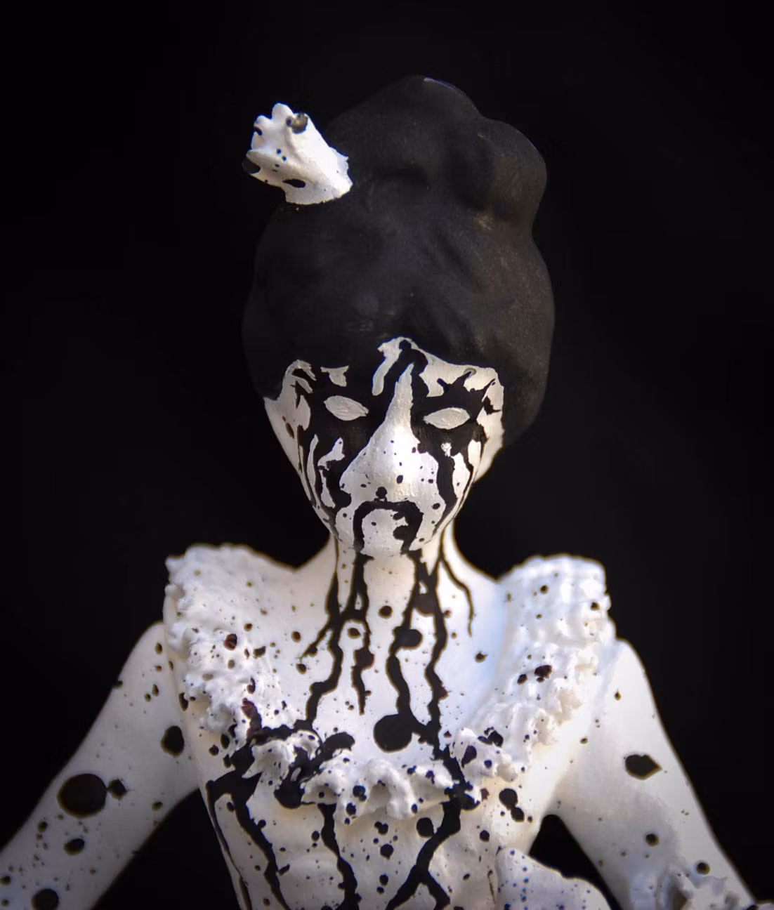 Omgjord porslinsfigur som vi målat för hand och satt vår egen prägel på. Hertiginna Agata Adelgund af Vintervik var en avlägsen släkting till kusinerna Astrid, Elsa och Ada. Hon sägs ha avlidit under mystiska omständigheter år 1872 på den avlägsna herrgården Svartdahl i norra Värmland. Den som besöker herrgården sägs höra svaga steg i de ödsliga korridorerna som om nätterna blir starkare. Då hör man låsta dörrar långsamt öppnas av sig själva och helt plötsligt står hertiginnan stirrandes vid din sängkant. Hennes offer hittas orörliga, med blicken fäst mot något ingen annan kan se – och hertiginnan har då redan gått vidare till nästa rum.