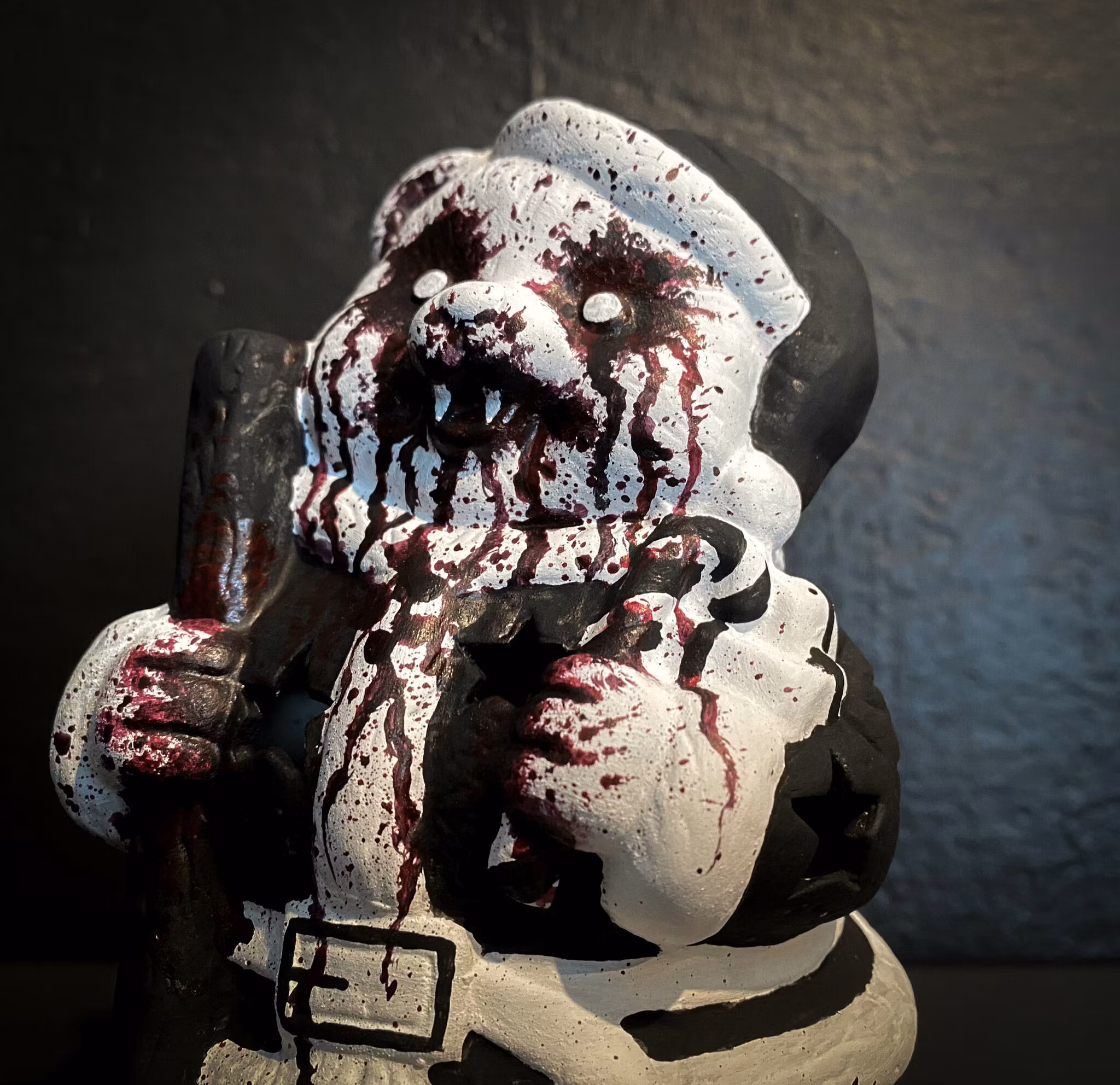 Omgjord ljuslykta formad som en björn med tomteluva, som vi har satt vår egen prägel på.